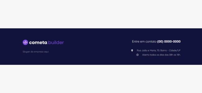 Slogan da empresa aqui. Entre em contato (00) 0000-0000 Rua João e Maria, 70. Bairro – Cidade/UF Aberto todos os dias das 08h as 18h.