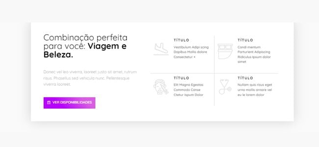 /*! elementor – v3.22.0 – 26-06-2024 */ .elementor-heading-title{padding:0;margin:0;line-height:1}.elementor-widget-heading .elementor-heading-title[class*=elementor-size-]>a{color:inherit;font-size:inherit;line-height:inherit}.elementor-widget-heading .elementor-heading-title.elementor-size-small{font-size:15px}.elementor-widget-heading .elementor-heading-title.elementor-size-medium{font-size:19px}.elementor-widget-heading .elementor-heading-title.elementor-size-large{font-size:29px}.elementor-widget-heading .elementor-heading-title.elementor-size-xl{font-size:39px}.elementor-widget-heading .elementor-heading-title.elementor-size-xxl{font-size:59px} Combinação perfeita para você: Viagem e Beleza. Donec vel leo viverra, laoreet justo sit amet, rutrum risus. Phasellus sed vehicula nunc. Pellentesque viverra laoreet. VER DISPONIBILIDADES Título Vestibulum Adipi scing Dapibus Mollis dolore Consectetur + Título Condi mentum Parturient Adipiscing Ridiculus […]